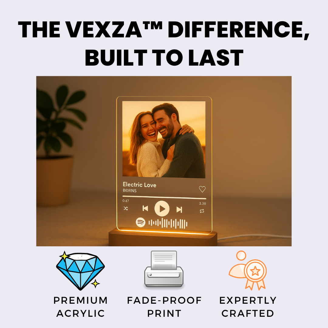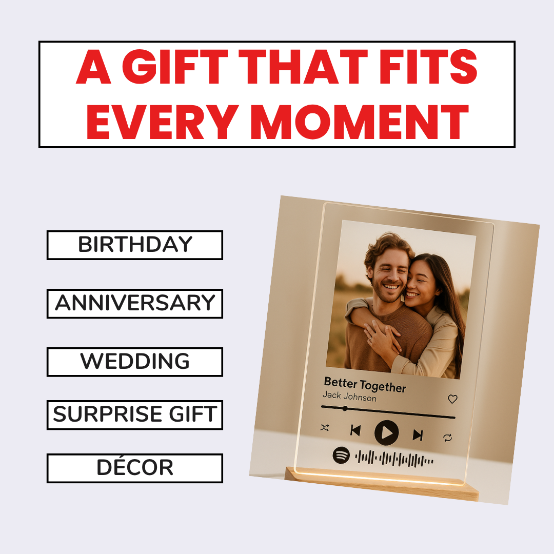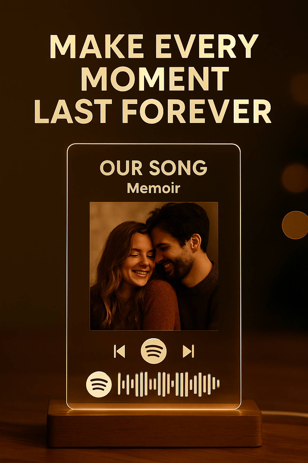 Our Custom Spotify Plaque transforms your favourite song and photo into a personalised, interactive display — blending music, memories, and modern design.